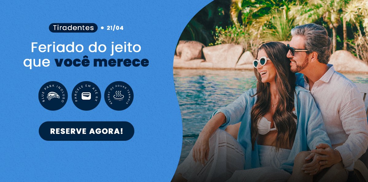 Pacote mínimo de 3 diárias com cortesia para 2 crianças de até 8 anos, pensão a escolha do cliente, acesso exclusivo ao Blue Park uma hora antes da abertura ao público e a comodidade de pagar a consumação do parque apenas no check out, entre outras vantagens.